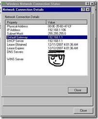 IP konflik a.k.a. conflict IP, pesan peringatan yang diberikan oleh windows bahwa ada ip yang tidak uniq dalam home network ku. kenapa ya? hem... persoalanan ini muncul saat kemarin siang, iseng2 ngotak atik config AP JAHT WP4001BR seharga 450 ribu rupiah (murah meriah muaaahhh), eh ga disangka, ip static dari ap tersebut ga sengaja ke ubah (nb. AP tsb aku buat jadi statik (pake 2 IP) untuk sharing koneksi internet dari salah satu provider di tempatku). Malam ini susahnya minta ampun untuk buka "configure Access Point ", tau ga kenapa? PASSWORDnya lupa. Tapi usaha ku ga sampai disitu, aku coba disconnect kemudian me-renew IP, kali aja bisa konek, paling tidak, passwordnya bisa balik lagi (hahaha, bego amat nih orang) begitu seterusnya sampai tercantum angka ini 192.168.1.1. lah...inikan bukan IP dari AP ku? lalu AP sapa? ah peduli amat.