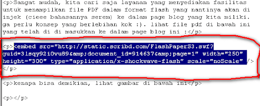 kode tersebut tersebut merupakan kode yang di berikan dari scribd untuk dimasukkan ke dalam tag <bod>....(code)....</body> di dalam blog yang anda miliki.